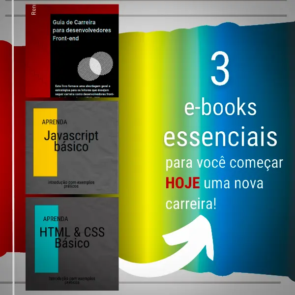 Um poderoso conjunto de 3 e-books desenvolvidos para impulsionar seu inicio de carreira no mundo da programação web. Descubra como simplificar conceitos complexos, acelerar seu aprendizado e construir uma carreira promissora no universo Front-End.